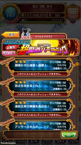 今日もまったりウィズをやってる南国さんですこんにちは。 超魔道バーニング、ようやくサブクエ全クリアしたので難関だったステージを攻略したデッキをぺたりと。 個人的に一番難しいと思ったのは3つ目の「連続正解で正気を見出せ!」でした。持ってる精霊の…